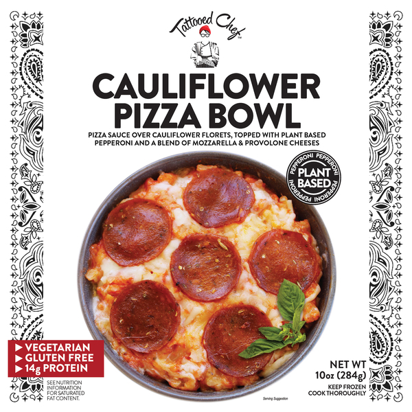 Up to 15 cash back Tattooed Chef Cauliflower Pizza Bowl with plant-based pepperon built the pizza base using the freshest cauliflower florets. Cauliflower Mac Cheese Bowl. Tattooed Chefs Organic Acai Bowl.